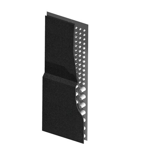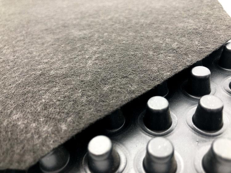• laminated geotextile fabric allows water to pass through and flow down the polymeric drain core