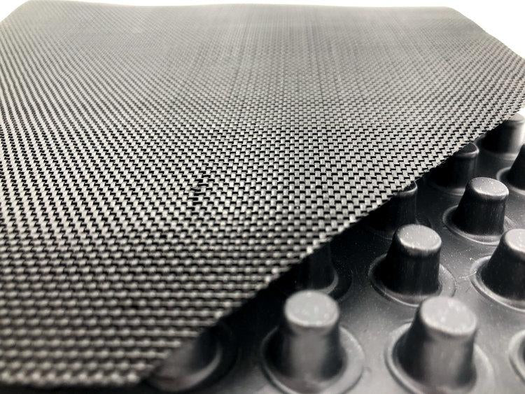 SITEDRAIN Sheet 306-W geocomposite drain is composed of a dimpled polymeric core with a woven monofilament geotextile bonded to the dimple side.